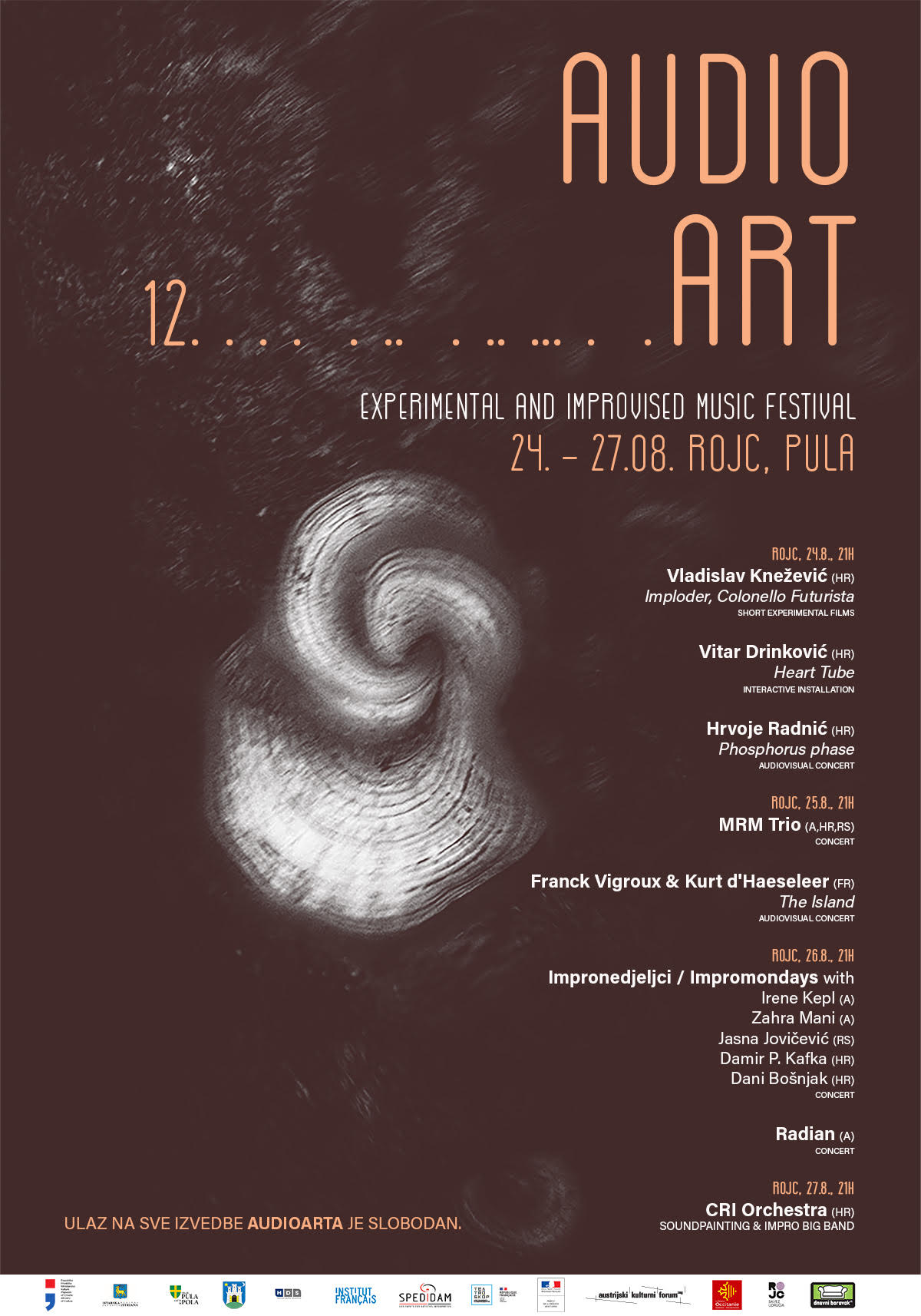 Od utorka, 24. kolovoza, do petka, 27. kolovoza, u unutrašnjem dvorištu Rojca održava se 12. izdanje festivala eksperimentalne i improvizirane glazbe Audioart.